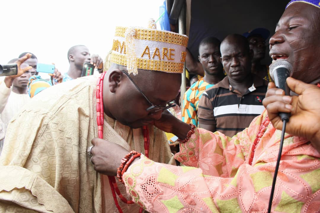 The installation program confirmed Chief Adebayo Adekola Adelabu as Aáré Soludero of Ado Awayeland. While installing the new Aáré Soludero, The Alado of Ado Awayeland, Oba Rev Ademola Olugbile described Oloye Adebayo Adelabu as a great and worthy philanthropist, and has contributed immensely to the development of the town and Oyo State in general. He therefore endorsed the new Aare Soludero of Ado Awaye as the Incoming Governor of Oyo State.